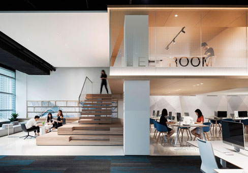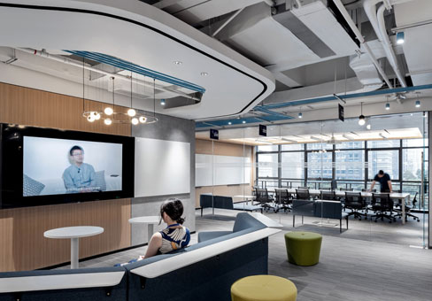 上海辦公室裝修公司案例:不同的材料和照明為每個層次和活動帶來溫暖和個性。循環模式提供了各種移動和居住空間的體驗。